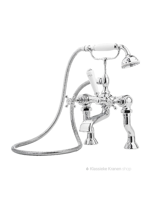 Hoge tweegats badkamerkraan met nostalgische uitstraling